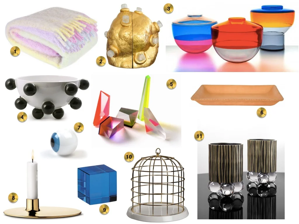 So you've completed a room in your home but it's still missing that je ne sais quoi? Select a few decorative items that speak to you and group them together in odd numbers and varying heights, much like you would in a floral arrangement. This is a great way to incorporate color if your scheme is neutral, or to add a fun conversation piece (I tend towards the bold and cheeky!). Here's a selection of eclectic accessories to get you started...