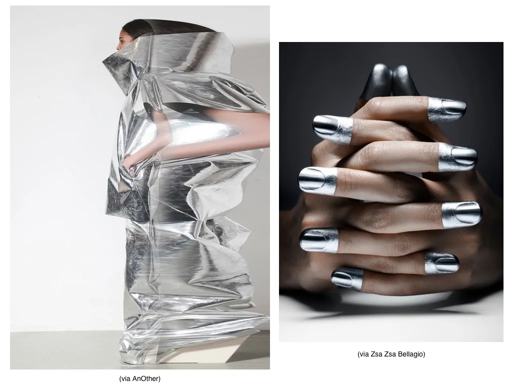 Gold isn't for everyone, so I thought we'd put that other precious metal in the spotlight today. Martin Margiela has been inspiring me with his futuristic runway fashions and home accessories as of late that are heavy on the silver. Silver accents lend a cool luster to any room or ensemble. Here are my sterling picks for your home and wardrobe...