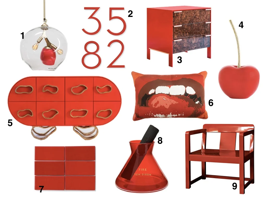Red, Scarlet, Crimson, Color Story, Interior Design, Fashion, Fashion Accessories, Home Accessories, Lighting, Tile, Jew, Paint
