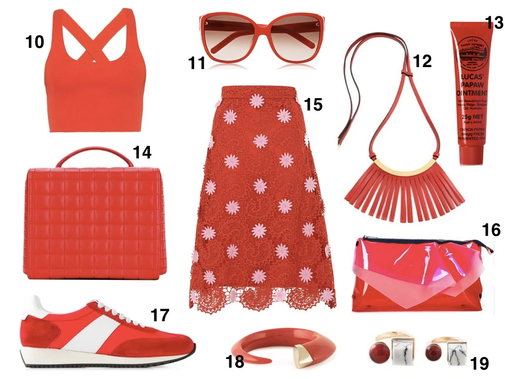 10. RIBBED TANK // 11. SUNGLASSES // 12. LEATHER NECKLACE // 13. LUCAS' PAPAW OINTMENT // 14. HANDBAG // 15. SKIRT // 16. MAKEUP BAG // 17. SNEAKERS // 18. BANGLE // 19. SET OF RINGS