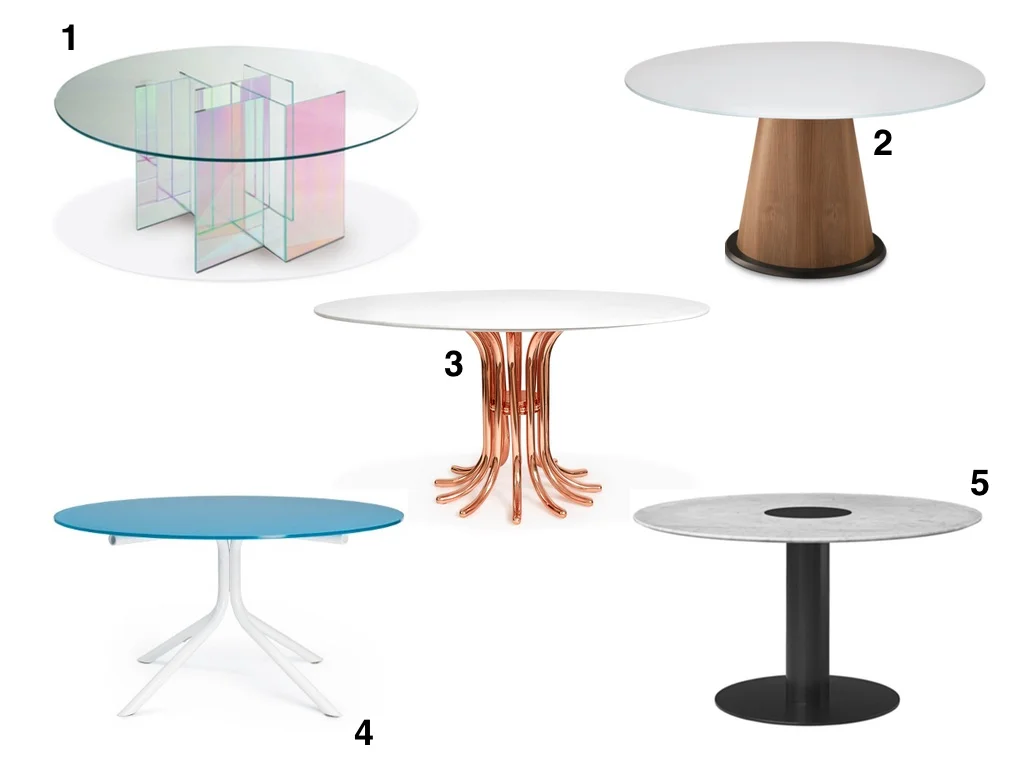 1. DIAPO ROUND DINING TABLE // 2. PALIO-152 ROUND TABLE // 3. ULTRA DINING TABLE // 4. ROSS LOVEGROVE ROUND TABLE // 5. GUBI TABLE 2.0