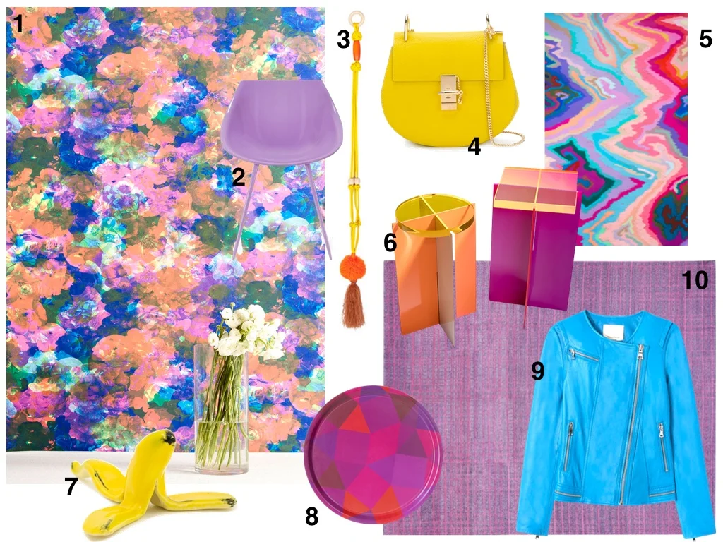 WALLPAPER // BRASS + GLASS PENDANT // ARMCHAIR // TABLE LAMP // MARBLE TOP END TABLE // COFFEE TABLE BOOK // CARVED WOOD CHAIN // HAND-BLOWN GLASS CONTAINERS // DECORATIVE BIRCH SURFBOARD // BRASS + BRONZE UPHOLSTERED BENCH // KNIT WOOL CUSHION // HANDWOVEN COTTON PILLOW // GRADIENT PLATES // BALANCING BLOCKS // TOWELS // PYRAMID MIRROR