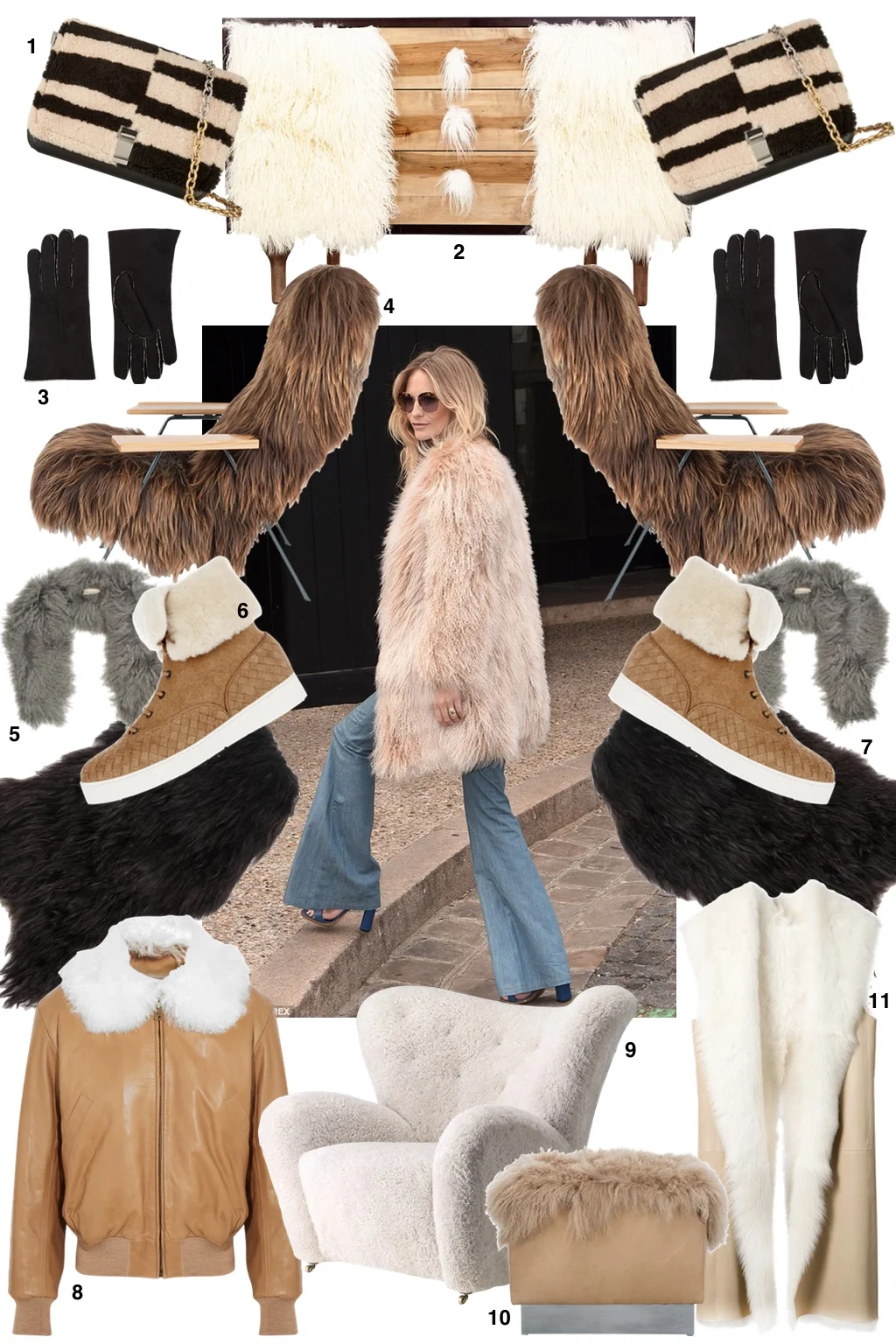 Shearling, Sheepskin, Wool, Furniture, Fashion, Interior Decor, Interior Design, Home Accessories, Living Rooms, Bedrooms, Family Rooms, Fashion Accessories, Handbags, Shoes, Fall Fashion, Poppy Delevingne, Kelly Wearstler, Isabel Marant, Ulla Johnson, Elle Decor, Forsyth, Proenza Schouler, Evan Z. Crane, Barneys New York, twentytwentyone, Karl Donoghue, Bottega Veneta, Bryce Gracey, ChloΓ©, Flemming Lassen, Shine by S.H.O., Rosetta Getty, Dering Hall, Property Furniture, The Outnet, Net-a-Porter